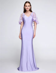 Solid Color Mermaid / Trumpet Bridesmaid Dress V Neck Sleeveless Wrap Included Sweep / Brush Train Jersey with Lace