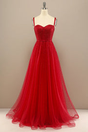 Spaghetti Straps Sweetheart Tulle Prom Dress with Beading