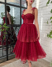 Spaghetti Straps Tulle  Glitter Homecoming Dress