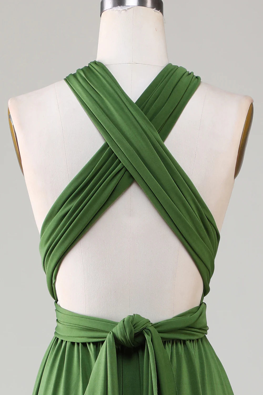 Spandex Multiple Dressing Methods Long Bridesmaid Dress - Olive