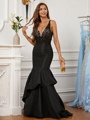 Trumpet/Mermaid Satin Lace V-neck Sleeveless Sweep/Brush Train Dresses