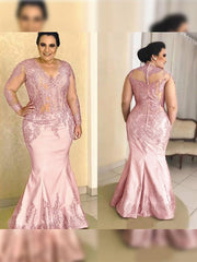 Trumpet/Mermaid Satin V-neck Long Sleeves Floor-Length Mother of the Bride Dresses With Applique