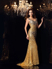Trumpet/Mermaid Straps Rhinestone Sleeveless Long Sequins Dresses