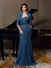 Trumpet/Mermaid Sweetheart Applique Sleeveless Long Chiffon Mother of the Bride Dresses - As Picture