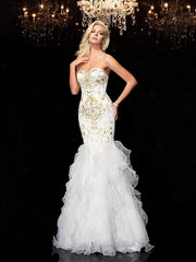 Trumpet/Mermaid Sweetheart Beading Sleeveless Long Organza Dresses - White
