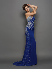 Trumpet/Mermaid Sweetheart Rhinestone Sleeveless Long Chiffon Party Dresses Formal Dresses
