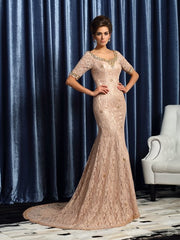 Trumpet/Mermaid V-neck Lace 1/2 Sleeves Long Elastic Woven Satin Mother of the Bride Dresses