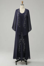 Two Pieces Sleek Glitter Sparking Long Mother of the Bride Dress
