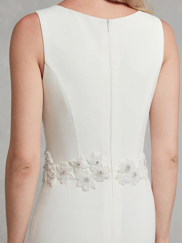 Wedding Dresses V Neck Satin Regular Straps Simple Plus Size with Appliques - Ivory / US 2 / UK 6 / EU 32