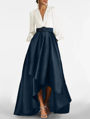 Wedding Guest Dress Elegant Dress Formal Black Tie Asymmetric Long Sleeve V Neck Satin with Ruched