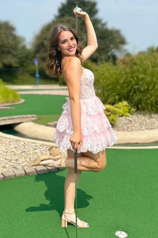 Sweetheart A-Line Spaghetti Straps Lace Short Prom Dress Charming Birthday Party Dress Lovely Graduation Dress Chic Homecoming Dress