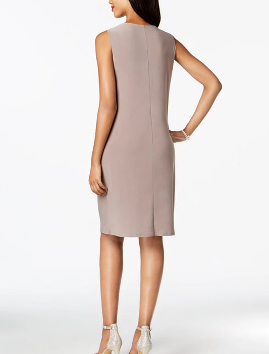 Two Pieces Mother of the Bride Dress Wedding Guest Jewel Neck Knee Length Chiffon Sleeveless Wrap Included Jacket Dresses with Sequin Ruching