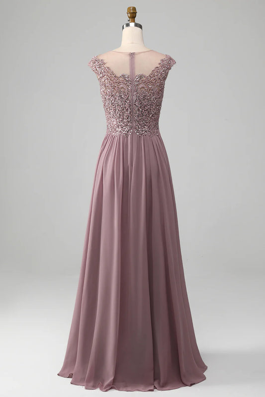 A-line Chiffon Scoop Neck Mother of the Bride Dress With Sequins