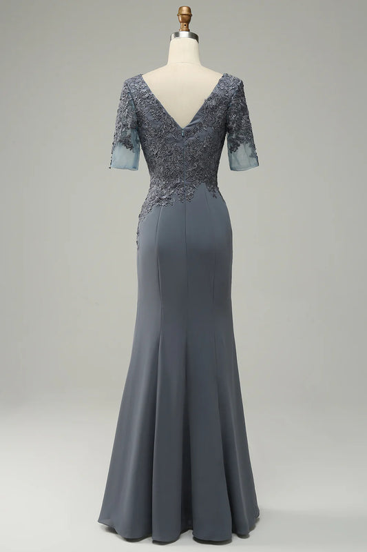 Lace Mermaid Chiffon Mother of the Bride Dress with Appliques Elegant