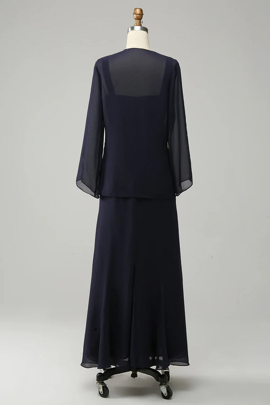 Two Pieces Sleek Glitter Sparking Long Mother of the Bride Dress