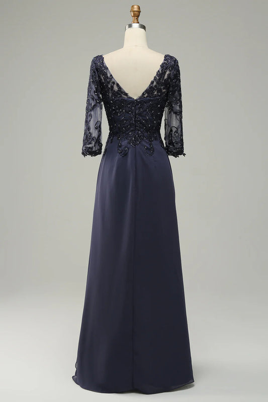 V Neck Lace Chiffon Mother of the Bride Dress Appliques
