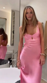 Elegant Spaghetti Strap Sleeveless Satin Long Formal Prom Dress Simple Evening Party Dress