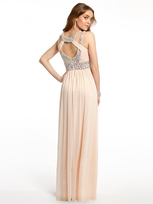 A-line/Princess Scoop Beading Sleeveless Floor-length Chiffon Party Dresses Formal Dresses