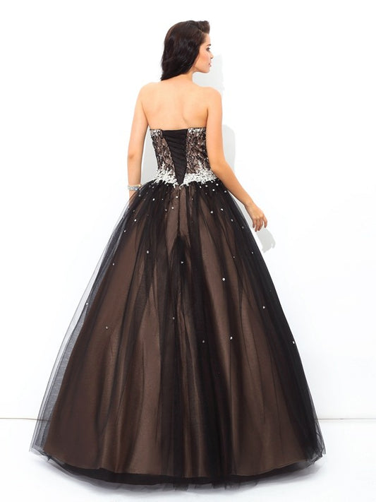 Ball Gown Sweetheart Beading Sleeveless Long Net Quinceanera Dresses