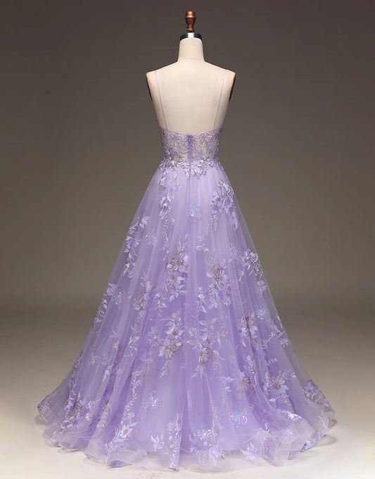 A Line Spaghetti Straps V Neck Prom Dress With Appliques