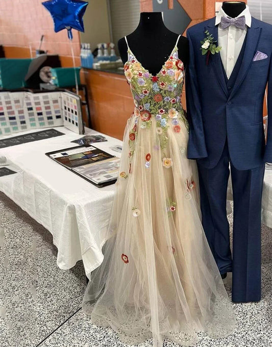 A Line Spaghetti Straps Tulle Long Prom Dress