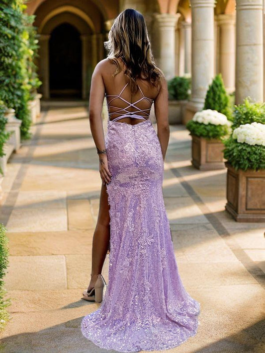 Sheath/Column Sequins Applique Spaghetti Straps Sleeveless Sweep/Brush Train Corset Prom Dresses Formal Dresses