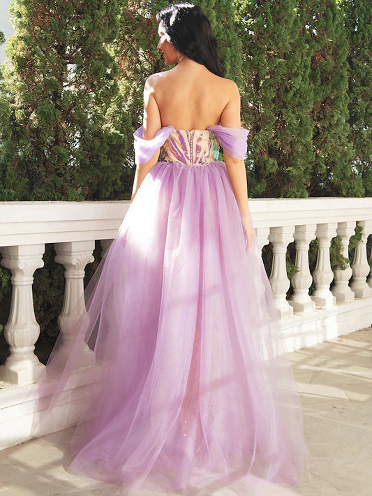 A-Line Prom Dresses Sparkle & Shine Dress Engagement Floor Length Long Sleeve Sweetheart Tulle with Sequin