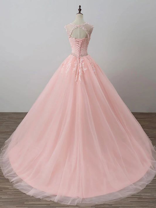 Ball Gown Quinceanera Dresses Princess Dress Tulle Lace Long Prom Gown Pink Tulle Lace Appliques Sweet 16 Dress