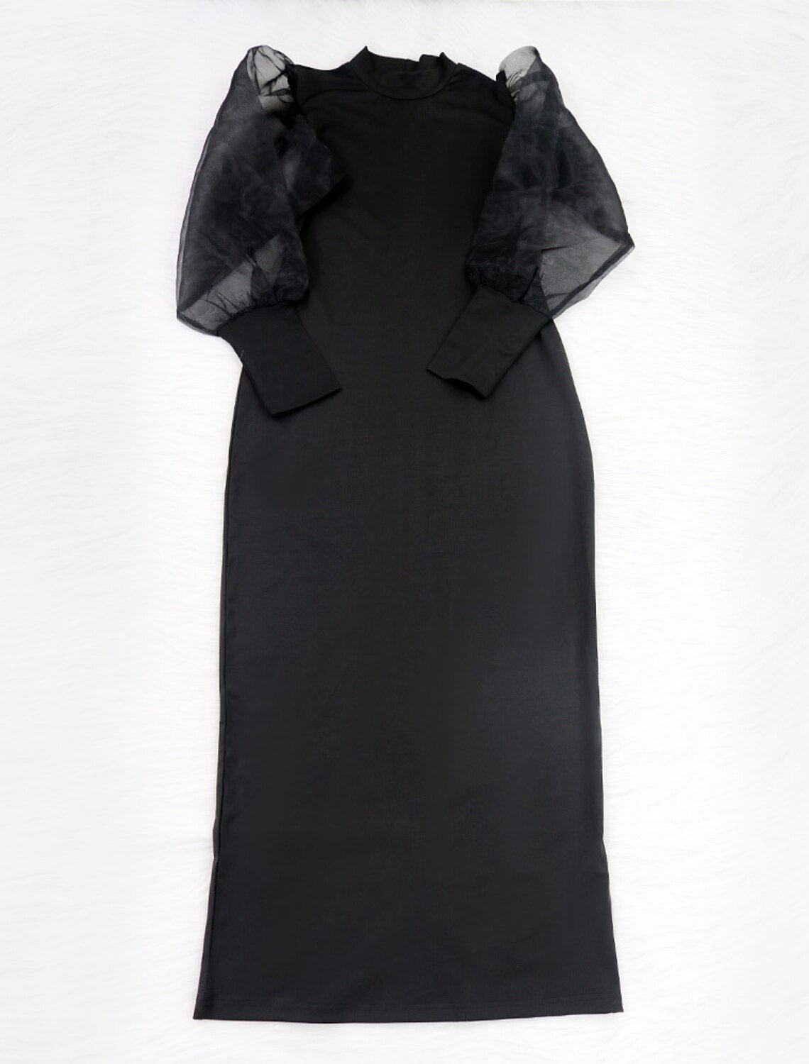 Sheath / Column Cocktail Dresses Black Dress Plus Size Wedding Guest Engagement Tea Length Long Sleeve High Neck Stretch Fabric with Pure Color Splicing - US 2 / UK 6 / EU 32